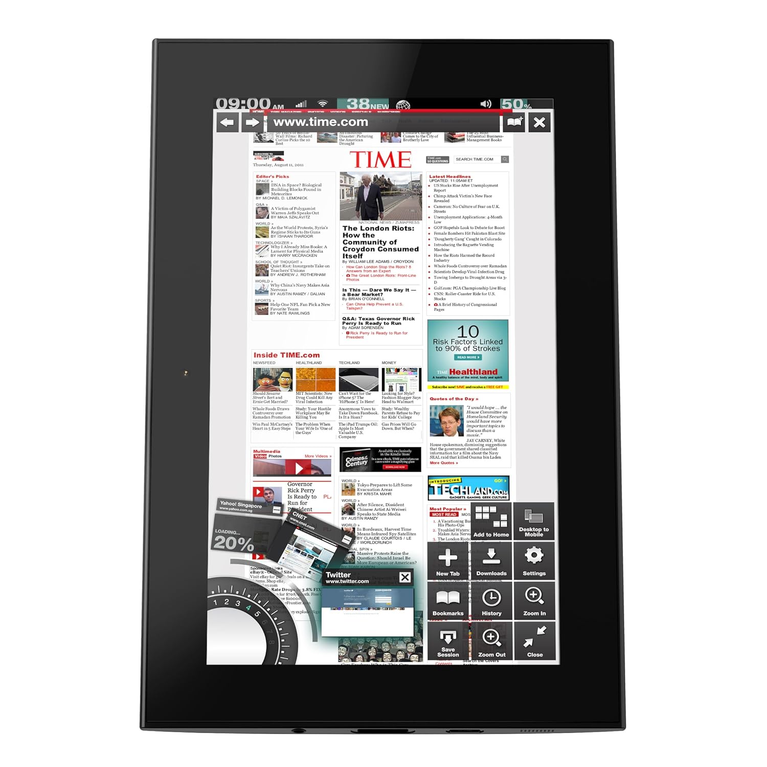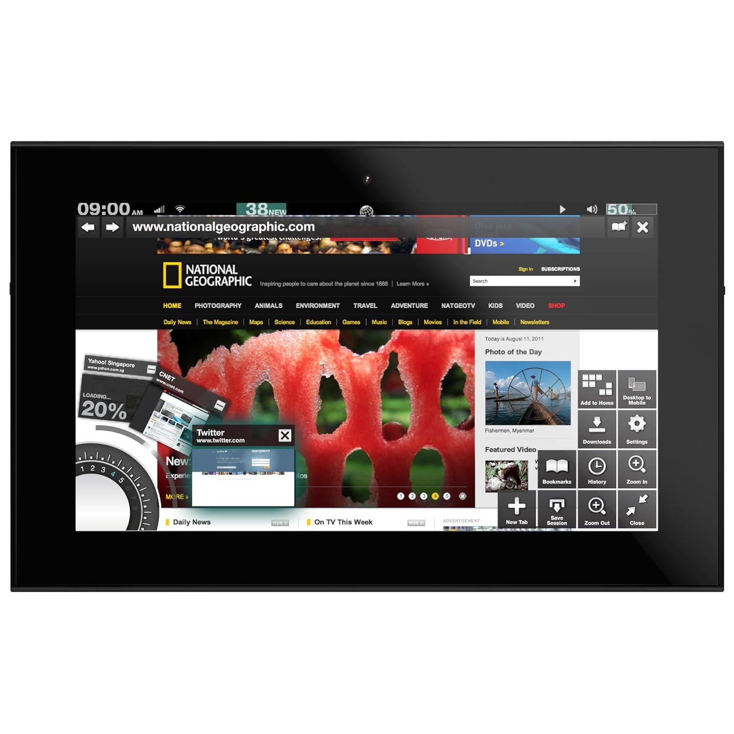 The Grid10 introduces the world's first chromeless browser, giving you a full-screen experience without the fuss of a browser interface wrapped around the screen. Browser controls show up when you want them and disappear when you want to concentrate just on the web page--you decide.